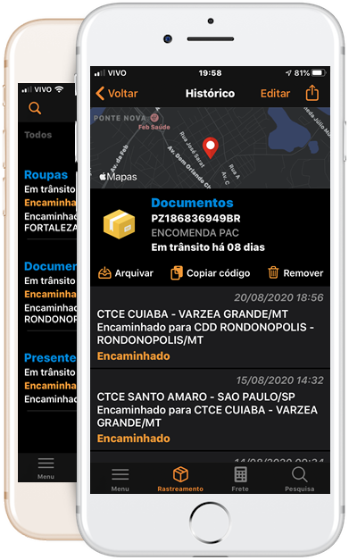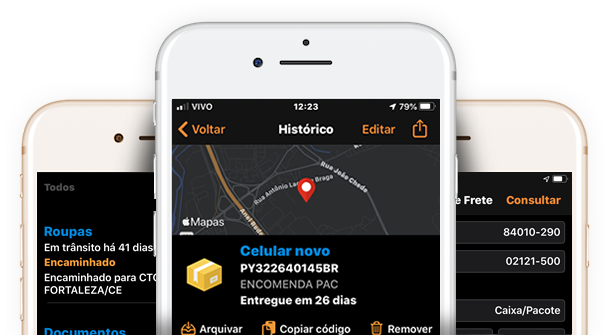 Cadastre suas encomendas e acompanhe todas as movimentações com detalhes e localização